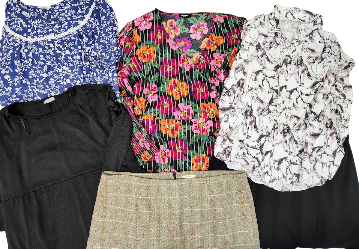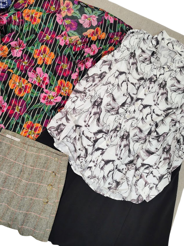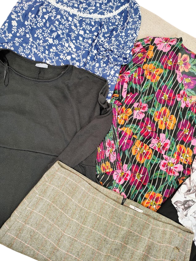 Balíček obsahuje: 2x košili, šaty, 2x sukni a asymetrický svetřík