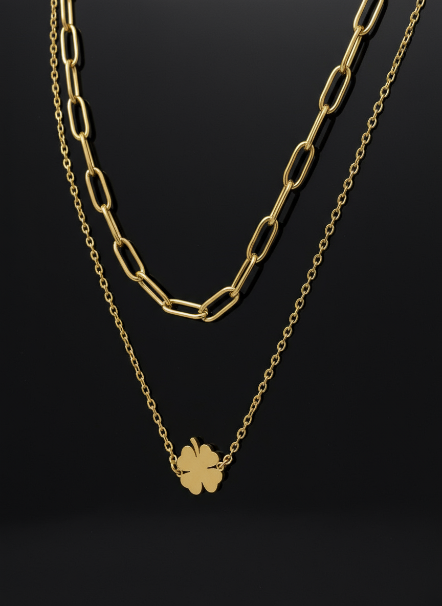 Elegantní dvojitý náhrdelník z chirurgické oceli ve zlaté barvě se srdíčkem.