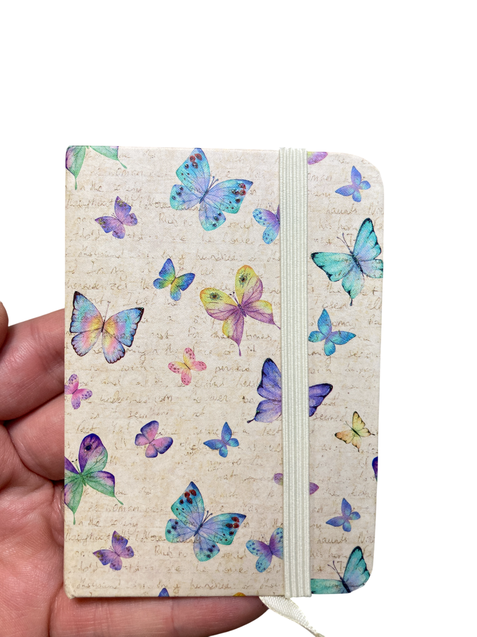 Roztomilý mini zápisník s nádhernými barevnými motýlky. Perfektní společník pro poznámky, nápady nebo jako dárek pro milovníky přírody.