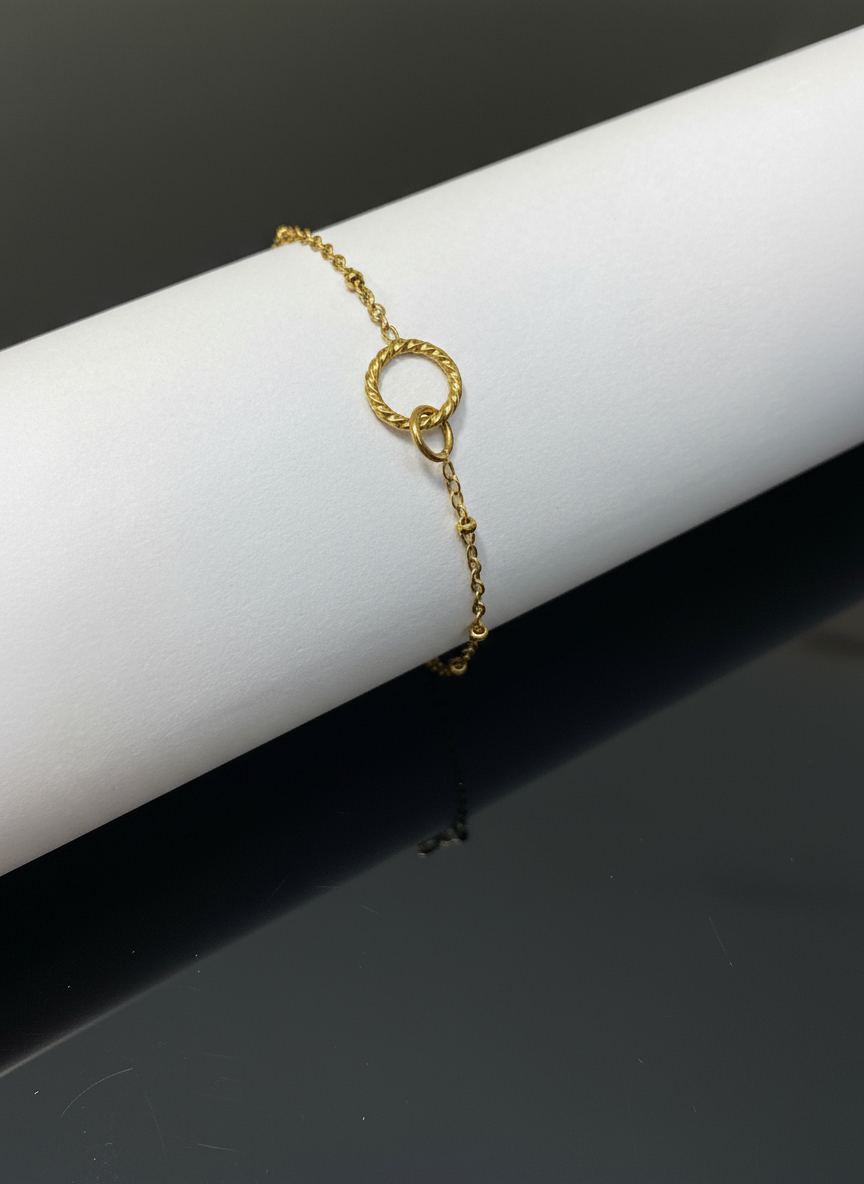 Elegantní a jemný náramek vyrobený z chirurgické oceli ve zlaté barvě.