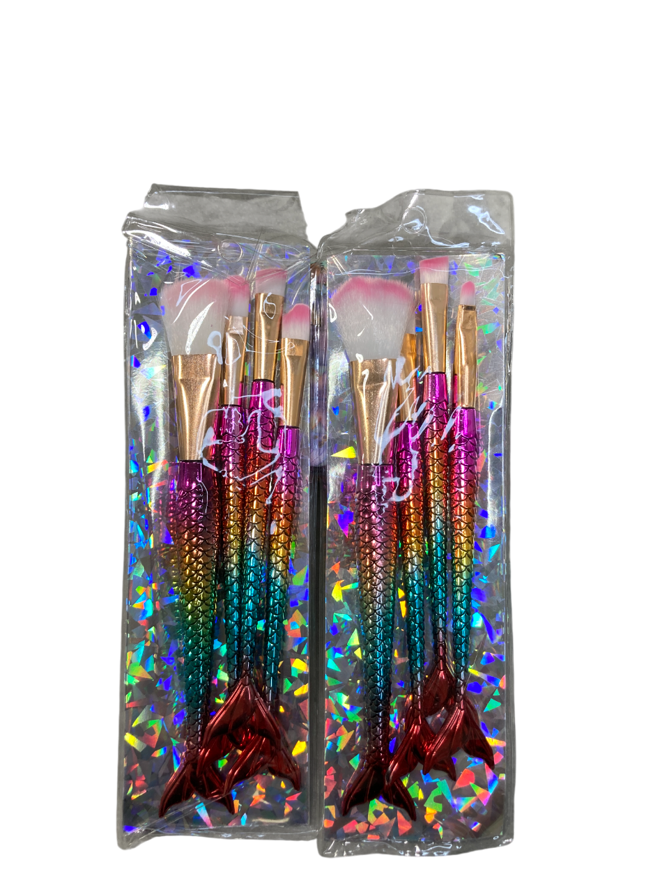 Luxusní sada 4 kosmetických štětců ve stylu mořské panny s elegantními zlatými rukojeťmi. Perfektní volba pro dokonalý make-up i jako stylový dárek.